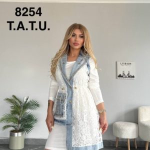 TT Комплект платье белое +жилет комби джинс/гипюр