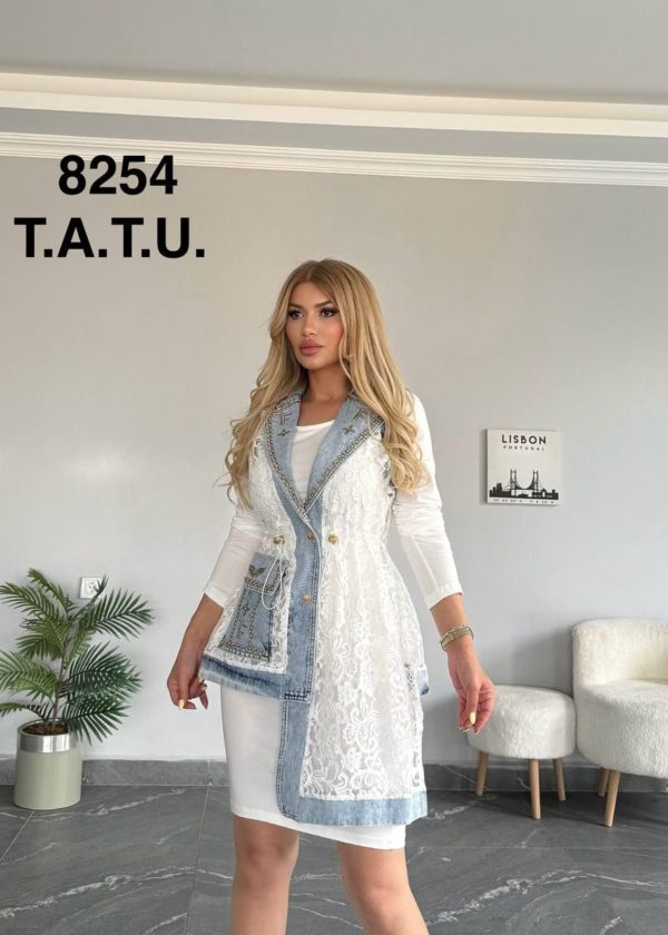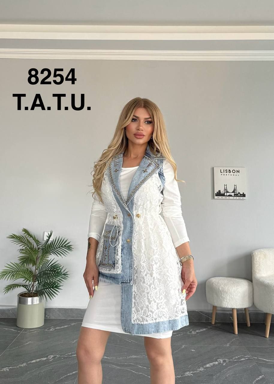/ TT Комплект платье белое +жилет комби джинс/гипюр