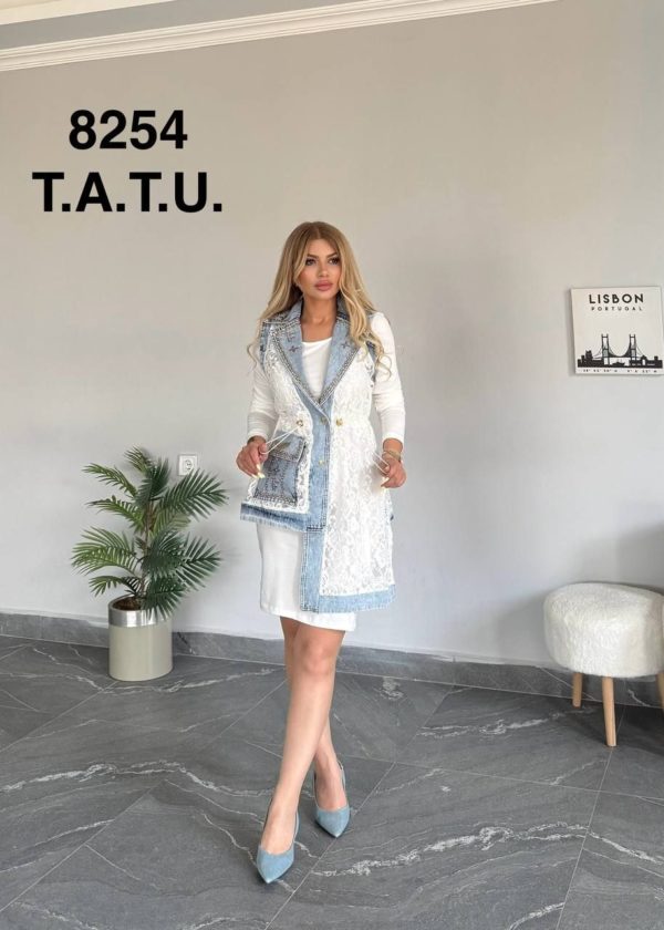 TT Комплект платье белое +жилет комби джинс/гипюр